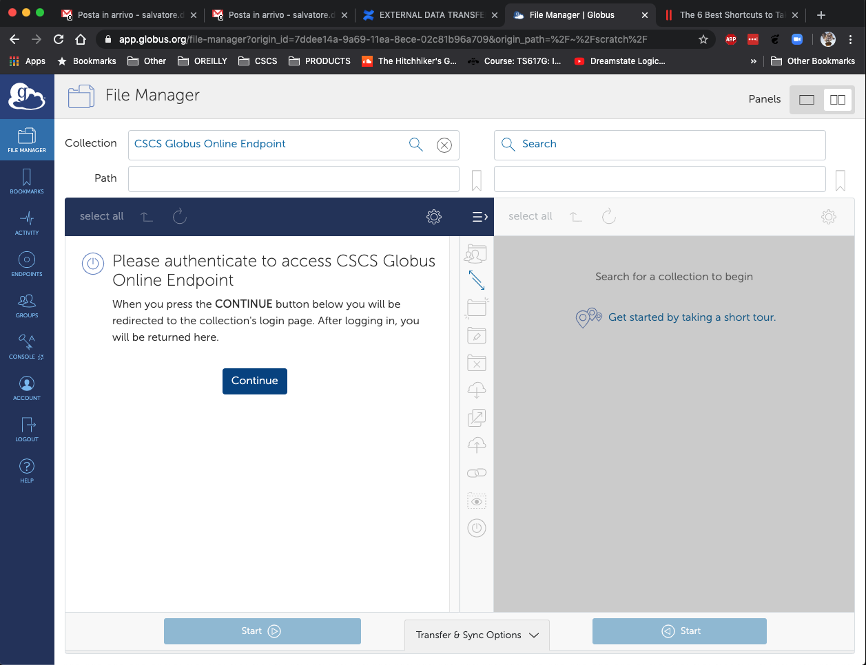 - Once logged in, you can transfer data to and from CSCS.